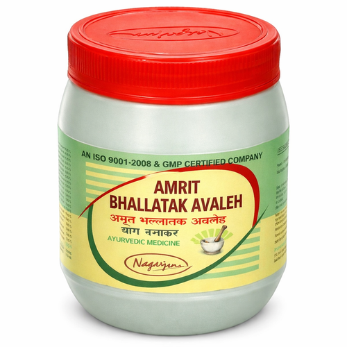 Amrit Bhallatak Avaleh is a traditional Ayurvedic formulation designed to support overall skin wellness. Prepared using classical ingredients, it is commonly used to help maintain healthy-looking skin and hair.