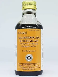 Arya Vaidya Sala Kottakkal Nilibhringadi Kera Tailam is a classical Ayurvedic hair oil prepared with coconut oil and traditional herbs. It is commonly used in Ayurvedic hair care routines to nourish the scalp, strengthen hair roots, and maintain healthy hair growth. Regular application may help support scalp health and improve hair texture.