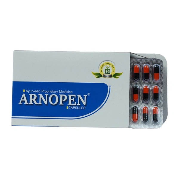 S G Phyto Arnopen Capsule is an Ayurvedic herbal formulation designed to support joint and muscle health. The combination of traditional Ayurvedic ingredients helps maintain flexibility, supports healthy joints, and promotes overall musculoskeletal comfort.