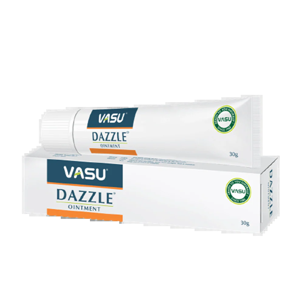Vasu Dazzle Ointment is a topical Ayurvedic formulation enriched with a blend of traditionally used herbs for external application.